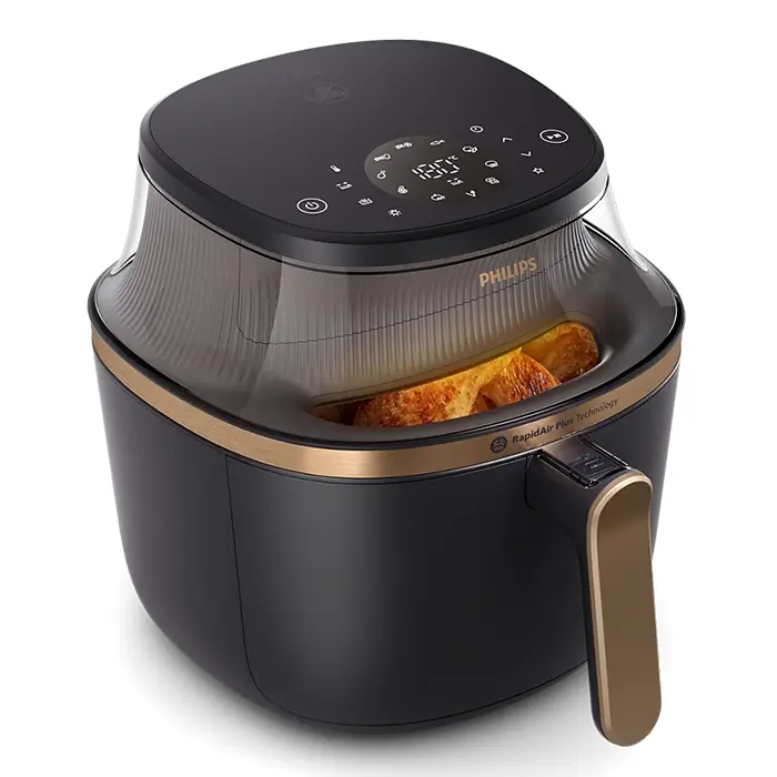 کمپانی فیلیپس در ساخت این محصول از جدید ترین طراحی خود استفاده کرده که بسیار خیره کننده و جذاب است و شما را در نگاه اول شیفته خود خواهد کرد. بدنه این محصول از جنس پلاستیک ضد حرارت ساخته شده که با رنگ جذاب مشکی و طلایی می تواند آشپزخانه شما را بسیار جذاب تر از آنچه که هست کند. بر روی بدنه این محصول نیز شیشه شفاف برای مشاهده عملکرد پخت تعبیه شده که می توانید به راحتی عملکرد پخت را مشاهده کنید.