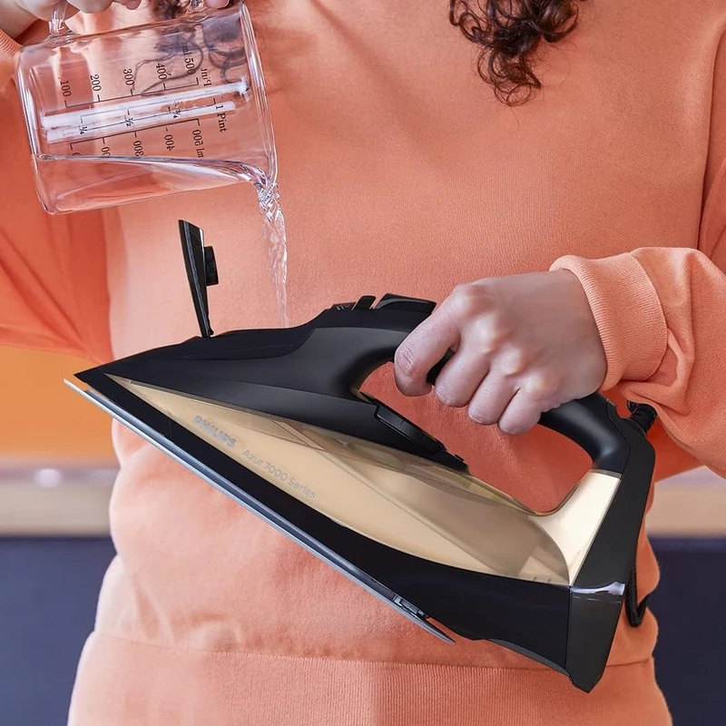 در کنار کیفیت ساخت بالا و مجهز بودن به امکانات پیشرفته، طراحی شیک و رنگ بندی زیبای مشکی/طلایی اتو بخار فیلیپس مدل DST7040 قطعا توجه هر خوش سلیقه ای را به خود جلب خواهد کرد. پر و خالی کردن آب دستگاه بسیار راحت بوده و از طریق دریچه بزرگی که جلوی دستگاه برای این کار در نظر گرفته شده انجام می شود. دکمه های روی دسته اتو جهت اعمال بخاردهی و پاشش آب کاربرد دارند.