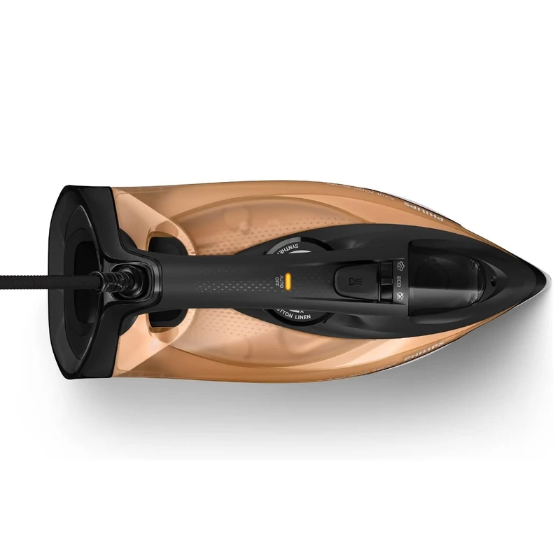 جنس کفی اتو استيم گلاید SteamGlide Plus بوده که فوق العاده نرم، ضد خش و بادوام می باشد. این کفی به دلیل ویژگی های خوبی که دارد به راحتی و با کمترین اصطکاک روی لباس ها حرکت کرده و تمیز نگه داشتن آن آسان است. وجود منافذ زیاد برروی کفی حجم زیادی از بخار را خارج می کند. وزن اتو بسیار سبک طراحی شده و با وجود دسته ارگونومی و نرمی که دارد اتوکشی را به کاری لذت بخش و ساده تبدیل کرده است.